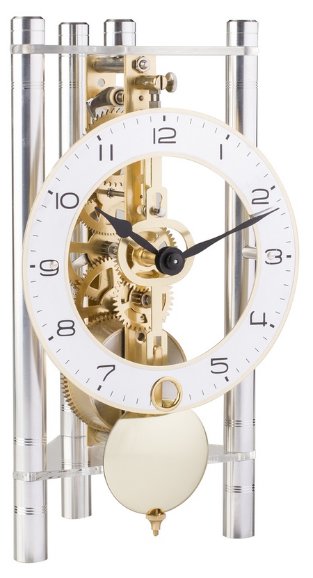 目を引く「柱」と機械式ムーブメントを融合させたデザインが特徴の近未来的な置き時計。