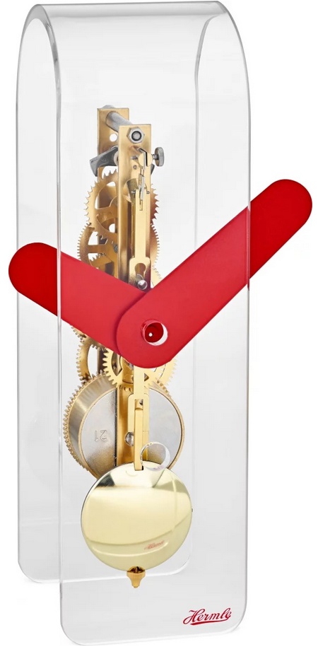 バウハウスの機能主義的発想と、ポップカルチャーを足して2で割ったような斬新なモダンデザインに、レトロな機械式ムーブメントを組み合わせたところが非常に面白い置時計。